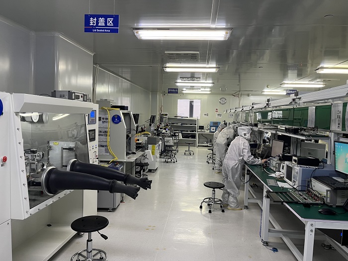 Во моментов, компанијата зафаќа површина од 3000 квадратни метри. Можеме да произведуваме 10K парчиња коаксијална ласерска диода или фотодиода InGaAs месечно, 2000 парчиња ласерска диода со пумпа за пакување со пеперутка, ласерска диода DFB, суперлуминисцентни диоди месечно, 100 парчиња EDFA и извор на ASE месечно.
