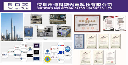 Shenzhen Box Optronics Technology Co., Ltd.(BOX Optronics Tech) е високотехнолошко претпријатие специјализирано за комуникација со оптички влакна и сензори за оптички влакна. Компанијата е посветена да им обезбеди на клиентите производи и услуги со повисок квалитет, побрзо време на одговор на услугите и да им помогне на клиентите да создадат поголема вредност. Со силни способности за истражување и развој, производство и продажба, како и искусни инженери за развој на производи, компанијата може да прилагоди персонализирани производи според различните потреби на клиентите. Долги години, компанијата е посветена на технолошките иновации, континуирано воведувајќи напредни технологии и таленти. Доби кредитно претпријатие на ниво на ААА, МСП засновано на технологија и национални високотехнолошки сертификати за претпријатија и успешно го помина сертификатот за системот за квалитет ISO9001, строго придржувајќи се до системските барања и ригорозно тестирајќи го квалитетот на производот.
