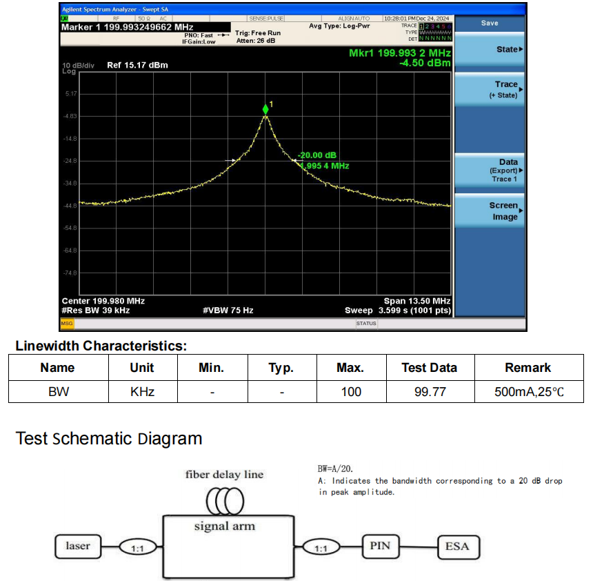 Кутија Оптроникалансираше DFB ласерска диода со тесна ширина од 1550nm, 100mW, 100kHz во 14-пински пакет-пеперутка со интегрирана TEC контрола на температурата и следење на PD. Овапроизводкористи дистрибуирана структура на повратни информации, која може да се пофали со целосна ширина на FWHM помала од 100 kHz и SMSR поголема од 40 dB. Брановата должина од 1550 nm спаѓа во „прозорецот со ниски загуби“ на комуникациската индустрија. Неговата тесна ширина на линијата под 100 kHz и SMSR поголема од 40 dB ефикасно го намалуваат фазниот шум и пречките во режимот во кохерентниот пренос, што го прави основен извор на светлина за брзи комуникации со оптички влакна на долги релации.