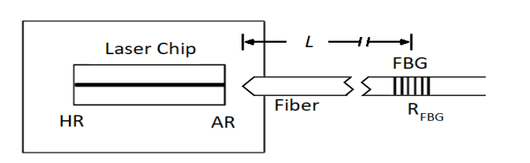 Изградбата на надворешен ласер со шуплина со помош на Fiber Bragg Grating (FBG) е исплатливо решение за подобрување на перформансите на евтините ласери. Како што е прикажано на слика 1, FBG е впишан во опашката на влакната, обично блиску до чипот што емитува, формирајќи надворешен ласер со шуплина.